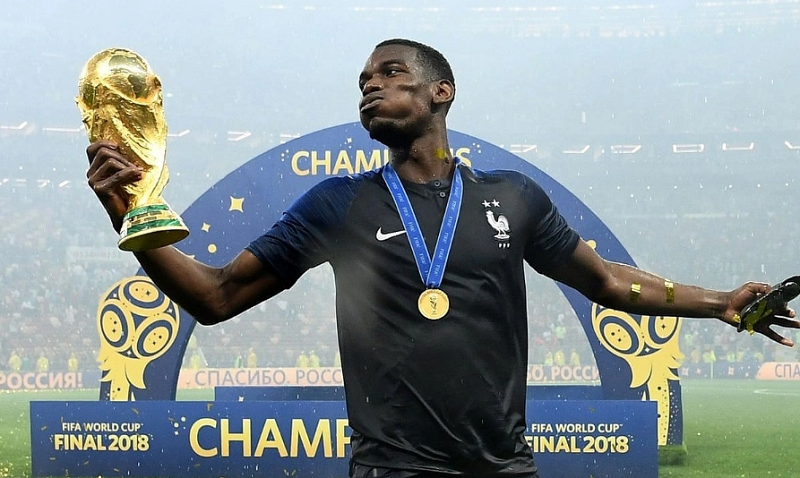 Khoảnh khắc Pogba nâng cao chiếc cúp vàng World Cup 2018, khẳng định vai trò thủ lĩnh tinh thần và đỉnh cao chói lọi nhất trong sự nghiệp quần đùi áo số.